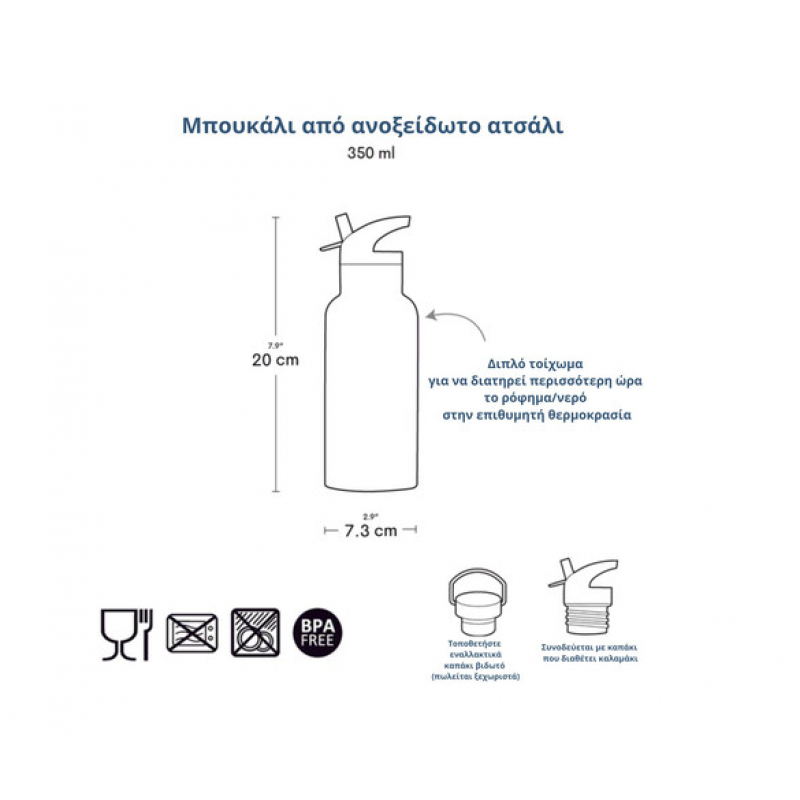 Με διπλό τοίχωμα και φτιαγμένο από ανοιξείδωτο ατσάλι είναι τέλειο για το σχολείο, τις βόλτες ή τα ταξίδια μας! Είναι φτιαγμένο και για ζεστά και για κρύα ροφήματα για αυτό και είναι τόσο εύχρηστο!! Θα το βρείτε με ενσωματομένο καλαμάκι το οποίο χρησιμοποιείται για τα κρύα ροφήματα ενώ για τα ζεστά συνειστούμε το ανοξείδωτο καπάκι που θα βρείτε εδώ!