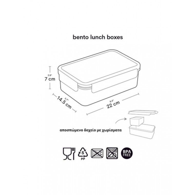 - Διαθέτει 3 θήκες για ξεχωριστή αποθήκευση φαγητού