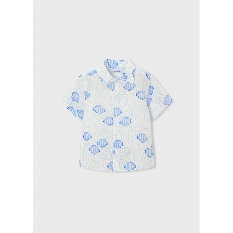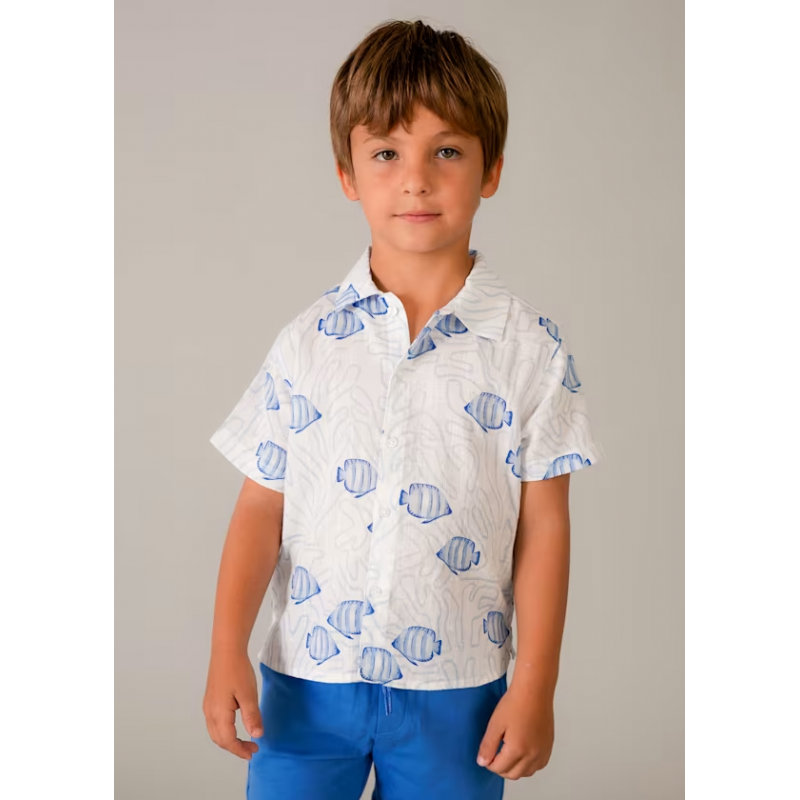 Mayoral Πουκαμισο κοντομαν σταμπωτο Άσπρο-μπλε 26-03115-027