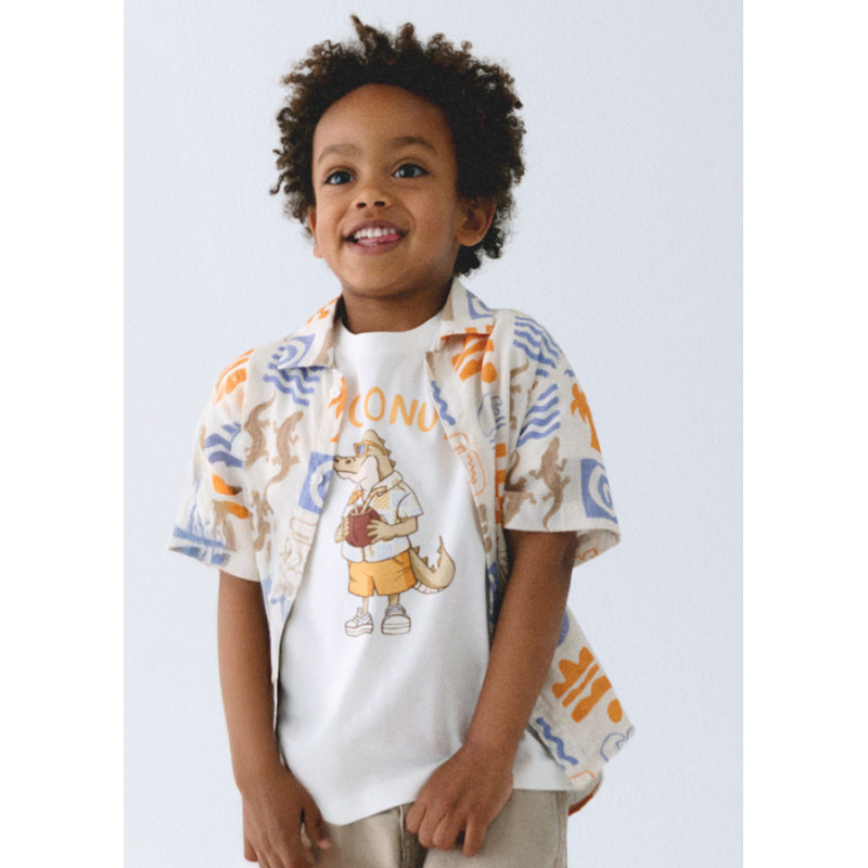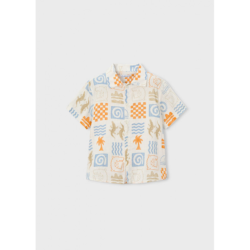 Mayoral Πουκαμισο κοντομαν σταμπωτο κρεμ-ροδακ 26-03115-025 3115