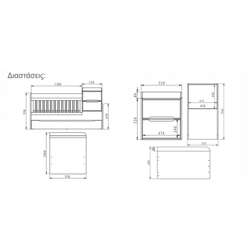 - Μετατρέπεται σε παιδικό κρεβάτι αφαιρώντας τα κάγκελα