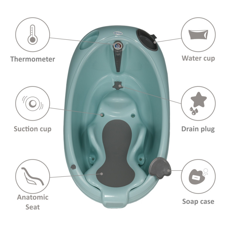 • Περιλαμβάνει κυπελάκι νερού για την διευκόλυνση σας στο μπάνιο του μωρού.