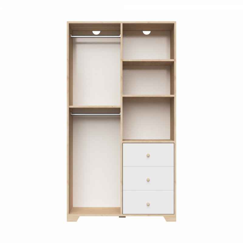 - Ντουλάπα που αποτελείται απο 2 ράφια εσωτερικά κι ένα ευρύχωρο συρτάρι για να μπορείτε να αποθηκεύσετε όλα τα ρούχα και προϊόντα του μωρού σας