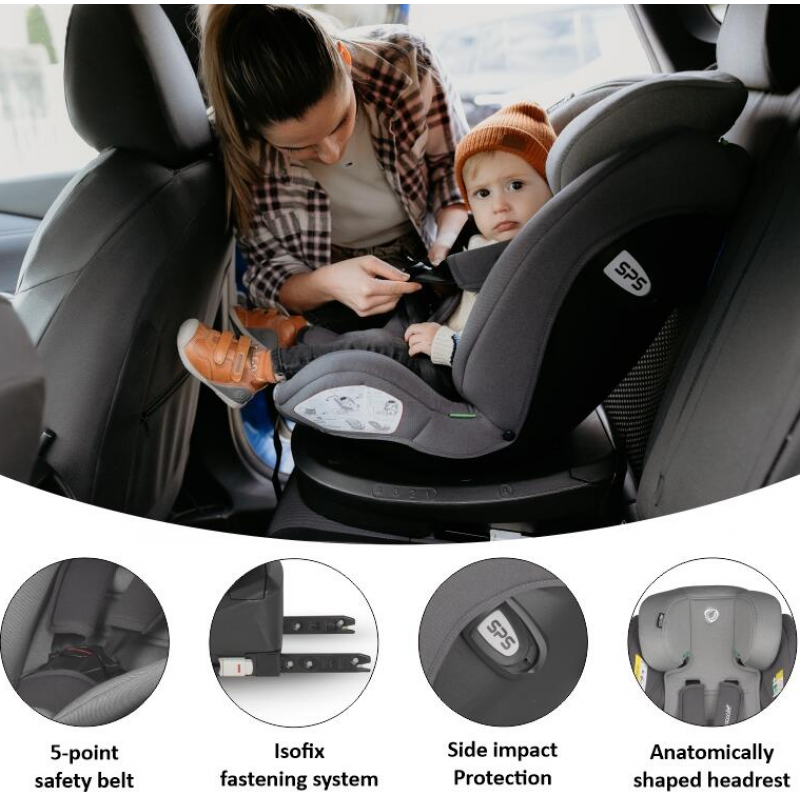 Σύστημα RotEasy: Περιστροφή 360° με ένα χέρι για εύκολη πρόσβαση και τοποθέτηση του παιδιού.