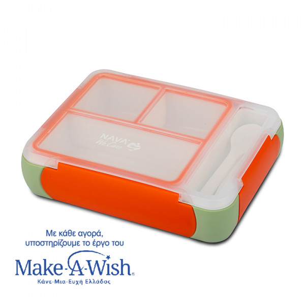 Έχει χωρητικότητα 800ml με τρείς ξεχωριστούς στεγανούς χώρους φαγητού, κι εργονομικό σχήμα για να μεταφέρετε το φαγητό ή το σνακ σας οπουδήποτε θέλετε. Επίσης το καπάκι έχει 4 κλιπς κλεισίματος για μεγαλύτερη στεγανότητα και περιλαμβάνει 1 κουταλι και 1 πιρούνι από πλαστικό, για να μπορείτε να απολαμβάνετε οποιοδήποτε φαγητό.