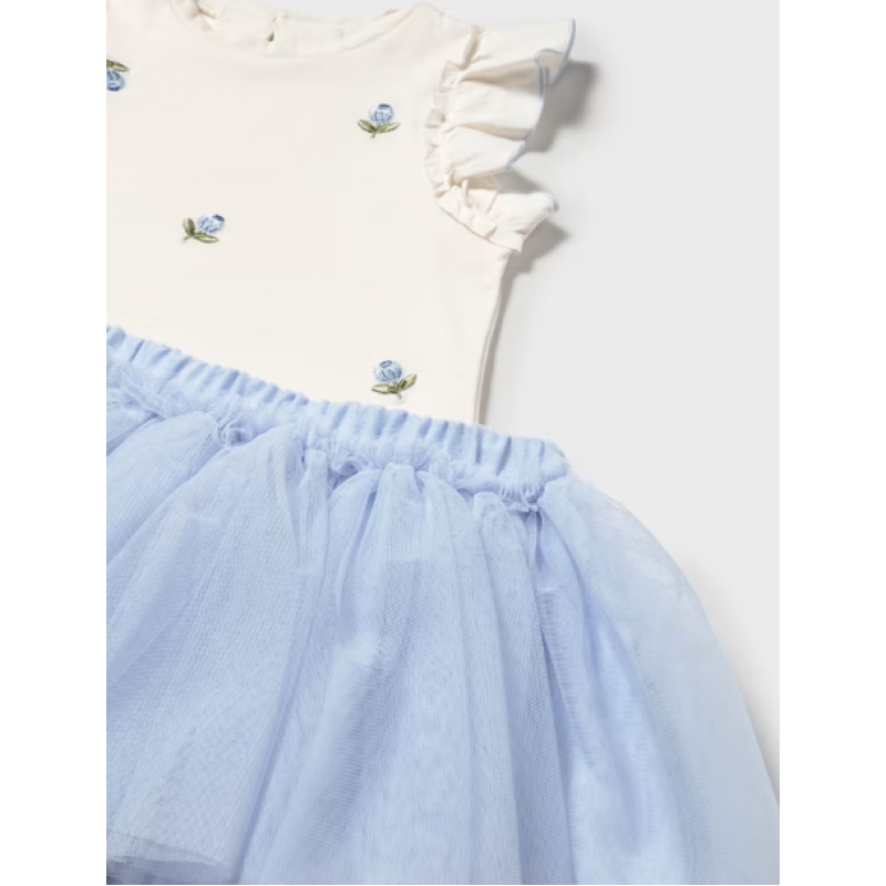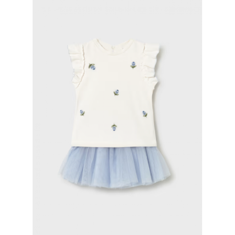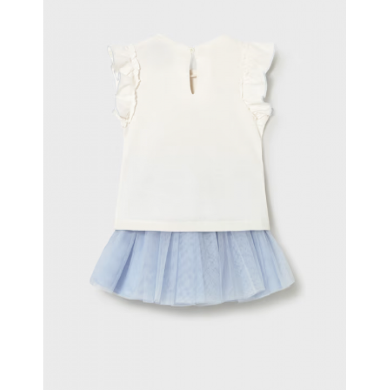 Mayoral Σετ φούστα από τούλι και μπλούζα με βολάν Σιέλ 26-01933-045