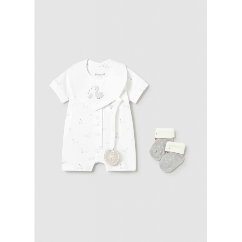 Mayoral Σετ Φορμάκι κοντό και αξεσουάρ Λευκό 26-01727-079