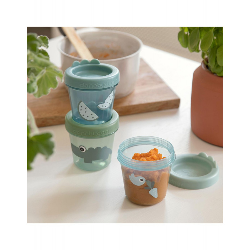 Χρησιμοποιήστε αυτό το πρακτικό σετ τριών δοχείων φαγητού για παιδικές τροφές και αφήστε ένα ελαφάκι- φίλο της Done by Deer να προσέχει τα καλούδια του μικρού σας μέσα. Είναι ιδανικά για να παίρνετε σνακ στο νηπιαγωγείο και όχι μόνο ή για να αποθηκεύετε τροφές στην κατάψυξη.