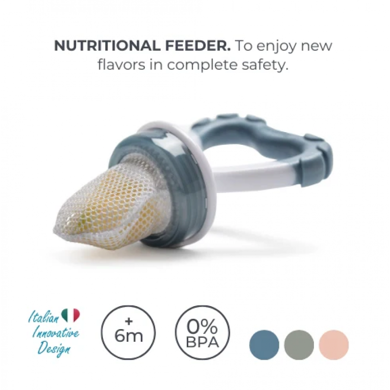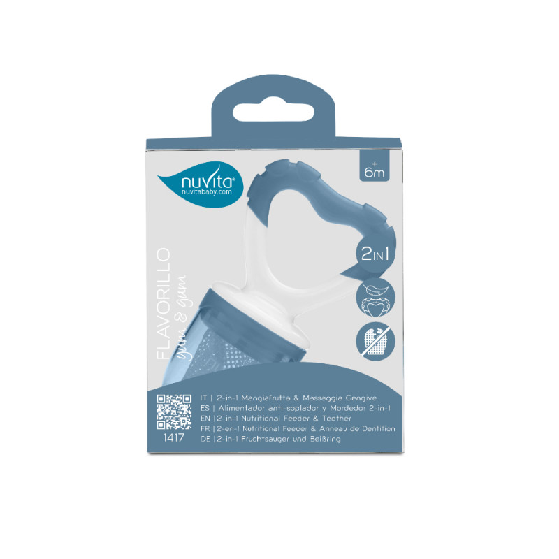 O τροφοδότης Flavorillo της Nuvita επιτρέπει στο μωρό να ξεκινήσει να δοκιμάζει τα πρώτα στερεά τρόφιμα αποφεύγοντας τον κίνδυνο κατάποσης κομματιών τροφής που είναι πολύ μεγάλα.