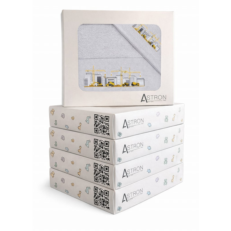 Παιδικές πετσέτες από την εταιρεία Astron Italy σε αποχρώσεις και σχέδια. Είναι κατασκευασμένες από 100% βαμβάκι.