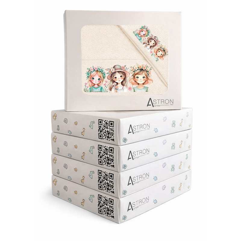 Παιδικές πετσέτες από την εταιρεία Astron Italy σε αποχρώσεις και σχέδια. Είναι κατασκευασμένες από 100% βαμβάκι.