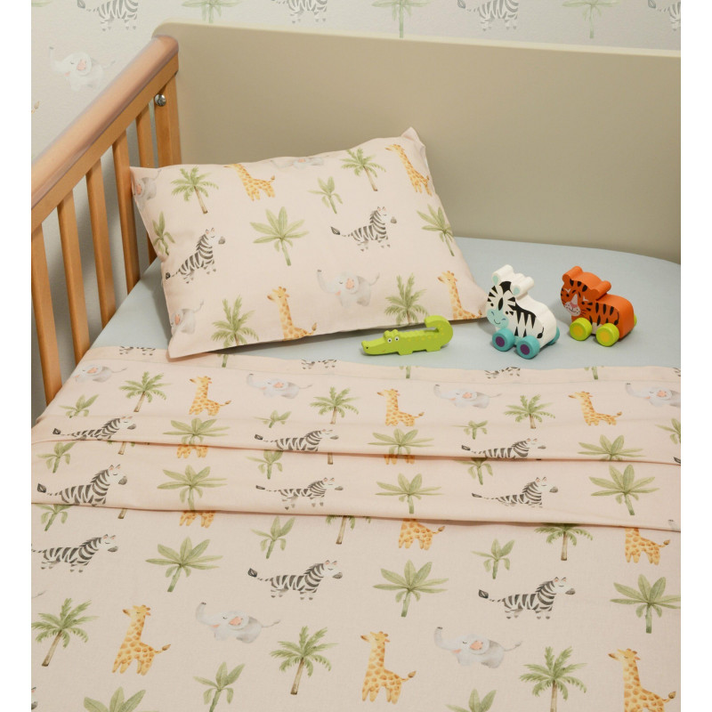 Πανωσέντονο εμπριμέ από 100% βαμβάκι 144 κλωστών με πιστοποίηση Oekotex. - Κατωσέντονο με λάστιχο, μονόχρωμο, για στρώμα 70x140cm. - Μαξιλαροθήκη 30x40cm. - Συσκευάζεται ως σετ σε κουτί. - Ελληνικής ραφής.