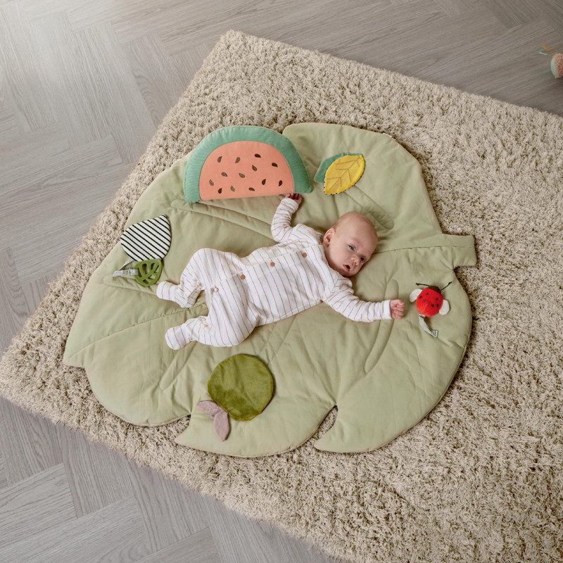 Σε σχήμα φύλλου και κατασκευασμένο από απαλό, αφράτο ύφασμα, είναι ιδανικό για tummy time ή ήρεμη χαλάρωση υπό επίβλεψη.