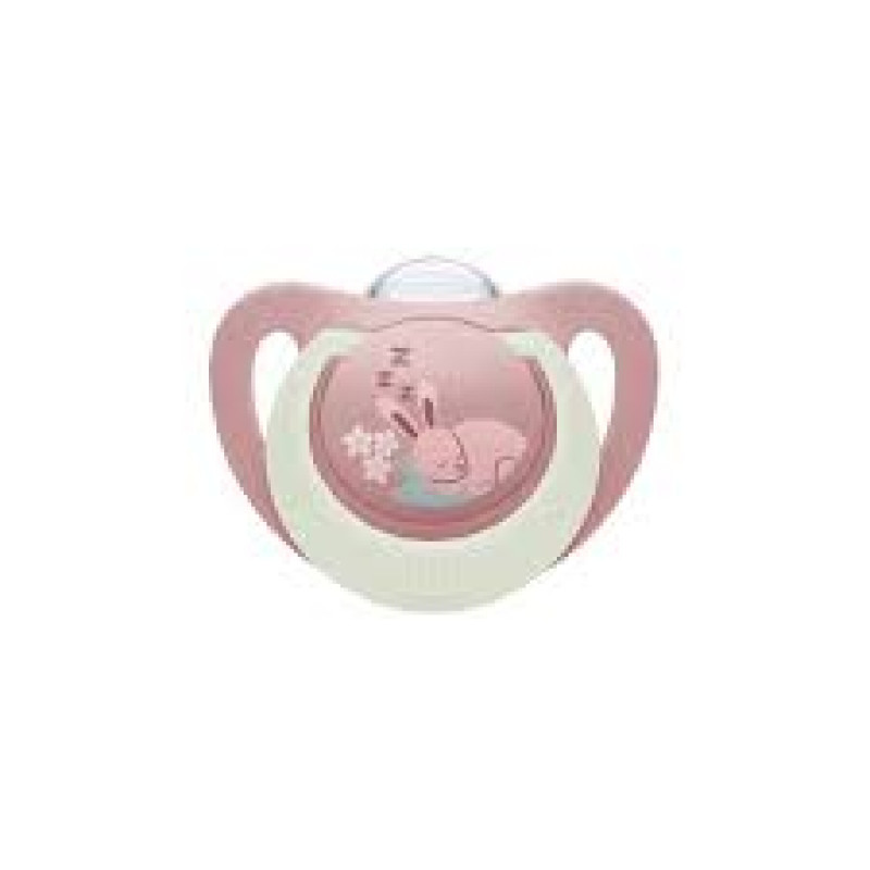 NUK Πιπίλα Σιλικόνης με Θήκη First Choice Night 0-6μηνών Ροζ Λαγουδάκι 175.392