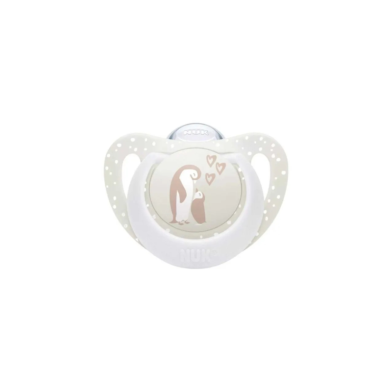 NUK Πιπίλα Σιλικόνης με Θήκη First Choice 0-6μηνών Μπεζ Πιγκουίνοι 175.384