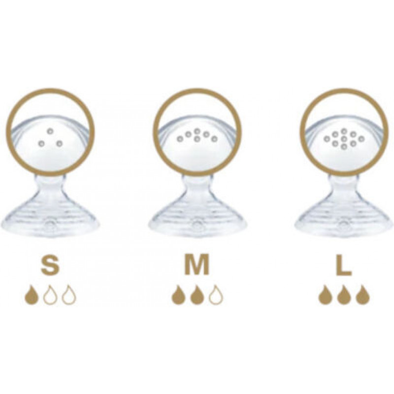 - Φυσική αίσθηση κατά το τάισμα: θηλή με εξαιρετικά φαρδιά βάση και απαλή άκρη με πολλαπλές μικροσκοπικές οπές – μια οικεία αίσθηση παρόμοια με το μητρικό στήθος