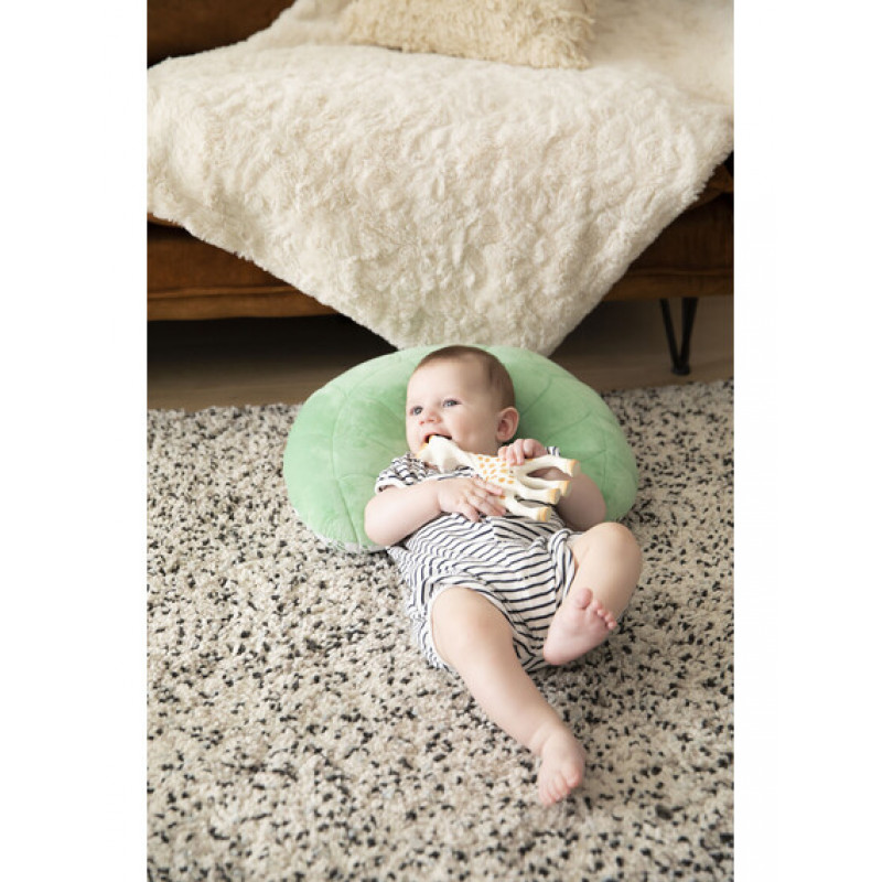 Το μαξιλάρι είναι στρογγυλεμένο, διαθέτει πολύ απαλό ύφασμα και αγκαλιάζει το μωρό σε μια ιδανική θέση ξεκούρασης. Είναι ιδανικό για μετά το τάισμα του μωρού ώστε να το βοηθήσει στην πέψη. Από πλευράς υγιεινής, υπάρχει ύφασμα που μπορεί να απλωθεί από την κάτω πλευρά στο πάτωμα, ώστε το μωρό να μην έρχεται σε απευθείας επαφή με το έδαφος.