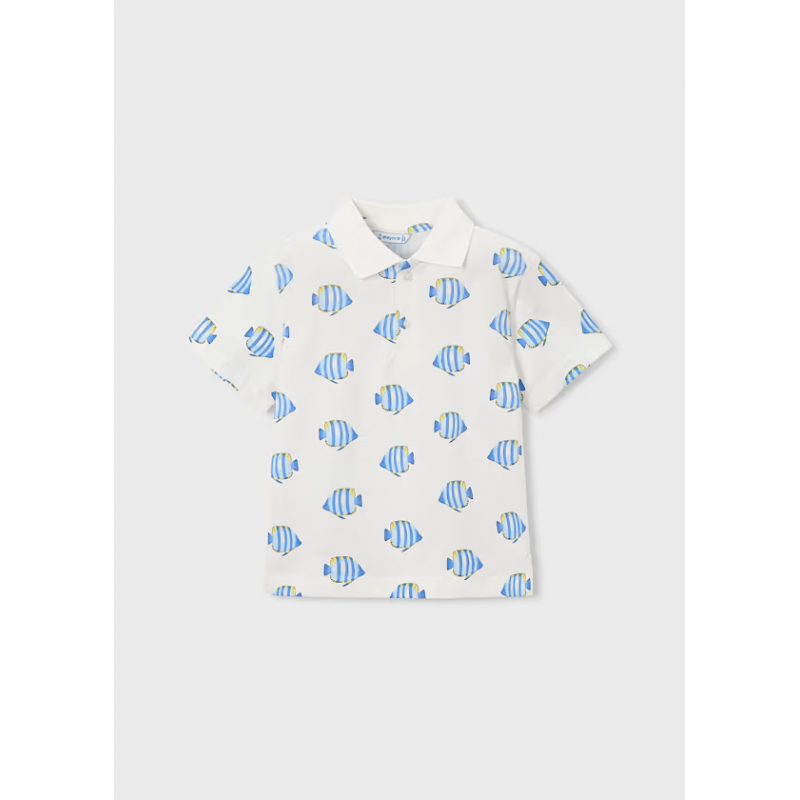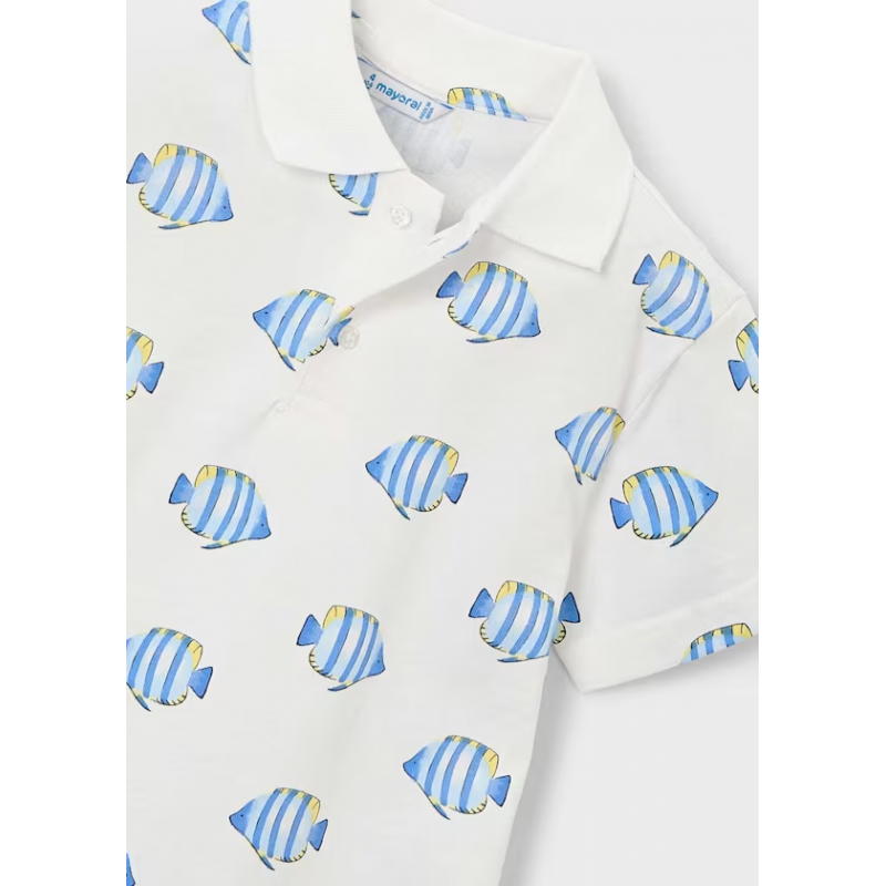 Mayoral Πολο κοντομανικο σταμπωτο Άσπρο-μπλε 26-03104-086