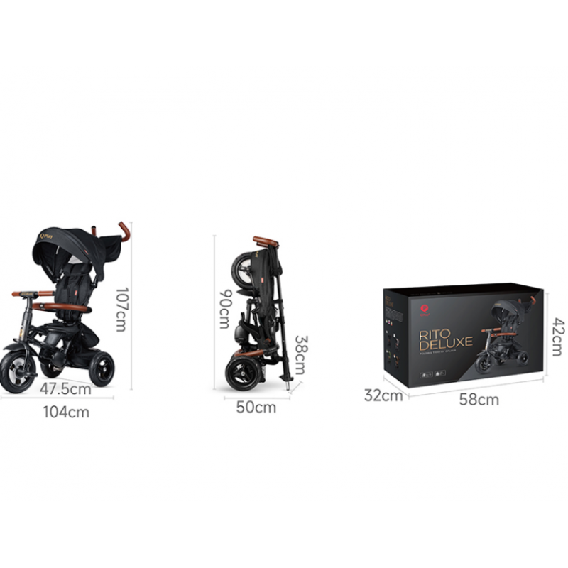 QPlay Τρίκυκλο Ποδήλατο Rito Deluxe Air Gel Wheels Brown 5061047481646