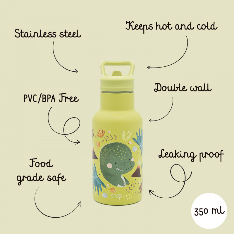 Sassi Aνοξείδωτο Mπουκάλι θερμός με καλαμάκι 350ml Cracky The Dinosaur SB1174