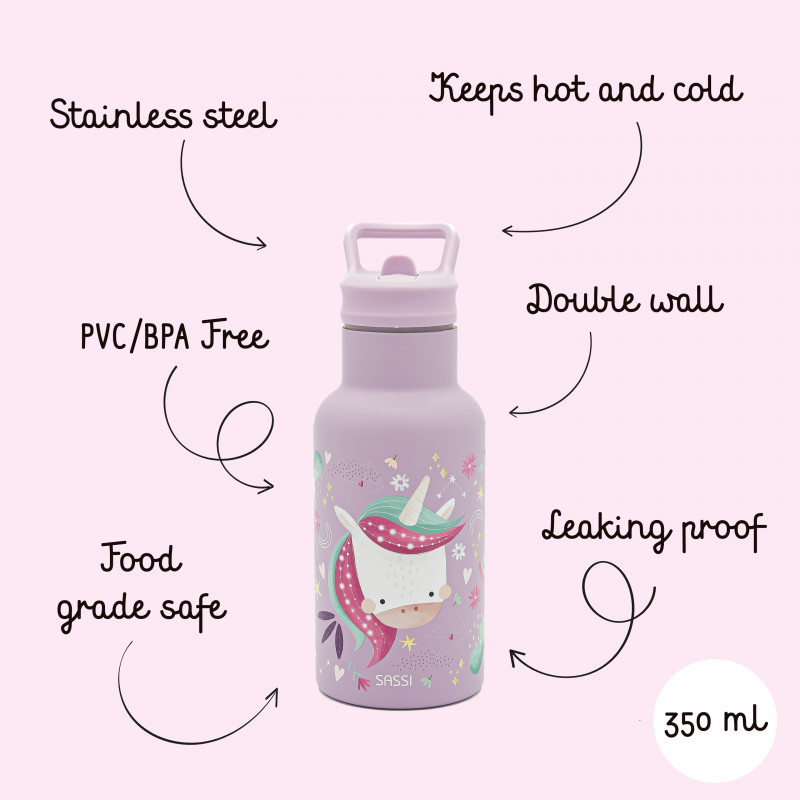 Sassi Aνοξείδωτο Mπουκάλι θερμός με καλαμάκι 350ml Sparkly The Unicorn SB1167