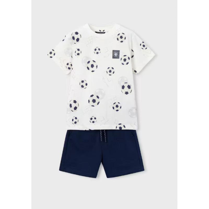 Mayoral Σετ μακό βερμούδα και μπλούζα σταμπωτό Ναυτικό μπλε 26-03607-080