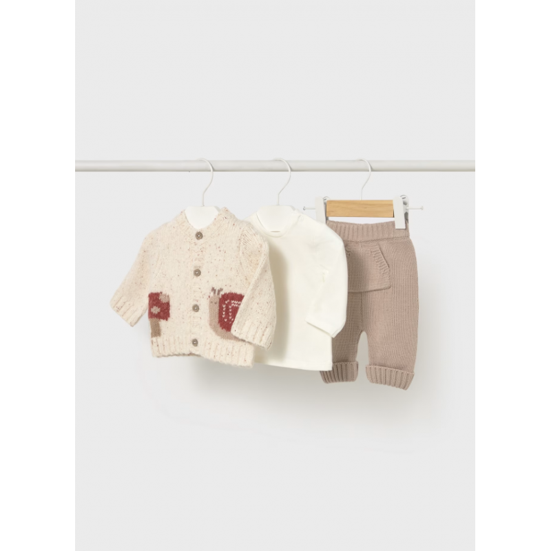 Mayoral Σετ Παντελόνι Μπλούζα Ζακέτα μπεζ σκούρο 15-02571-002