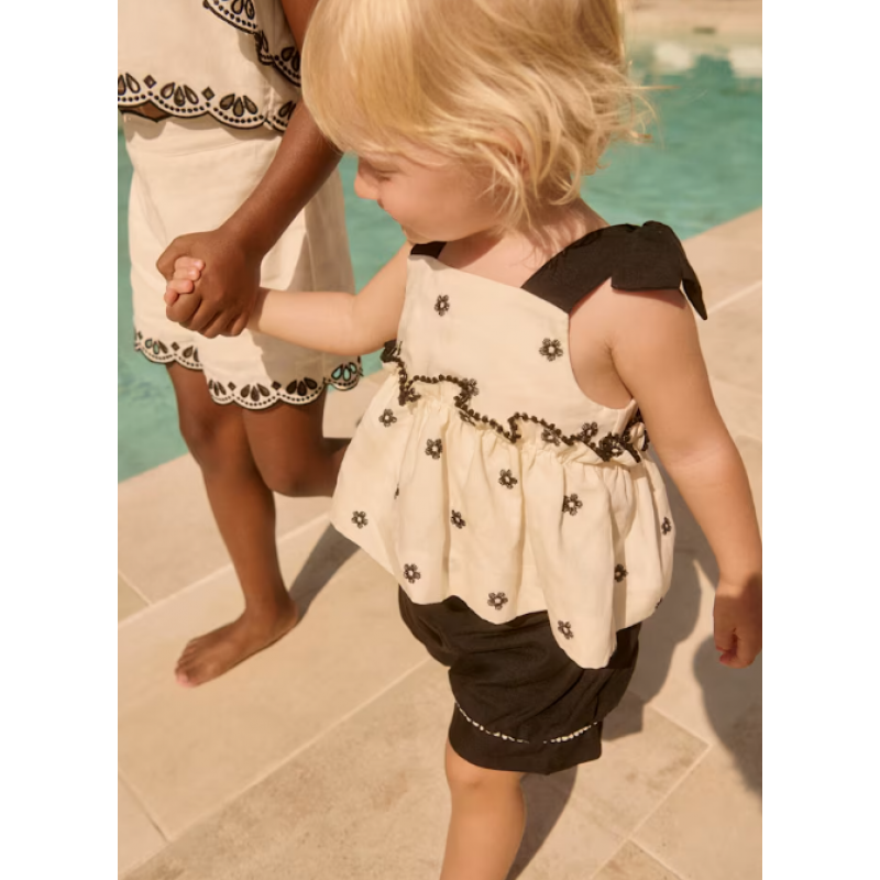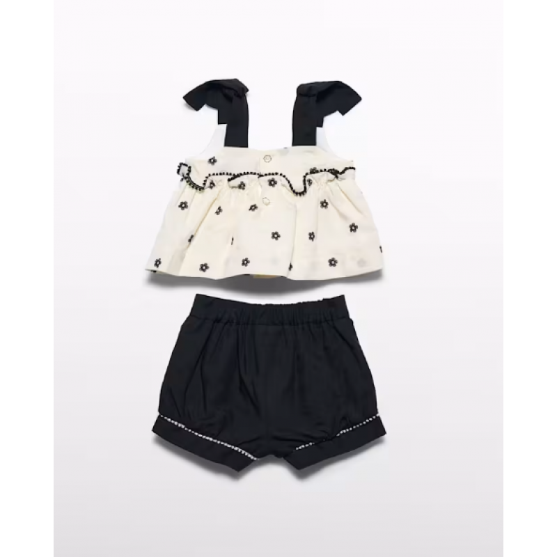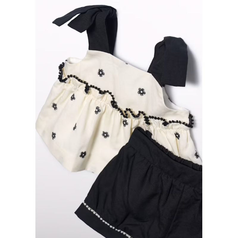 Abel and Σετ κεντημένο λουλούδια Lula Κρεμ-Μαύρο 26-05270-006