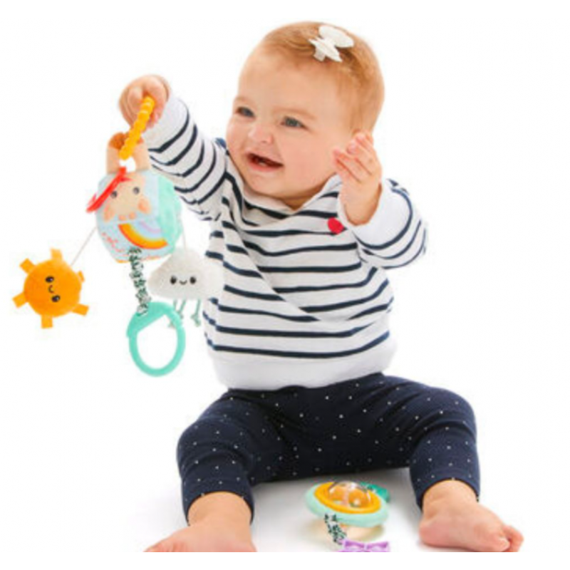 Υπάρχει και ένα μικρό «παιχνίδι έκπληξη» με ήλιο και σύννεφο που κινείται όταν το τραβάει το μωρό — κάτι που θα το ενθουσιάζει.