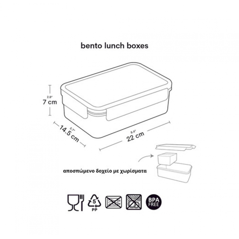 - Διαθέτει δυο στρώσεις. Η επάνω στρώση έχει 2 θήκες για να διατηρεί διαφορετικού είδους φαγητά τακτοποιημένα