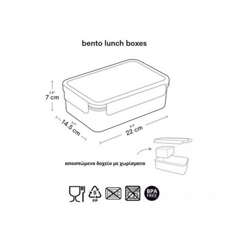 - Διαθέτει 3 θήκες για ξεχωριστή αποθήκευση φαγητού