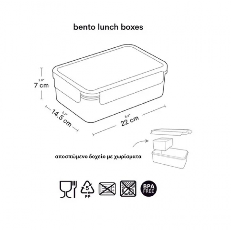 - Διαθέτει 3 θήκες για ξεχωριστή αποθήκευση φαγητού