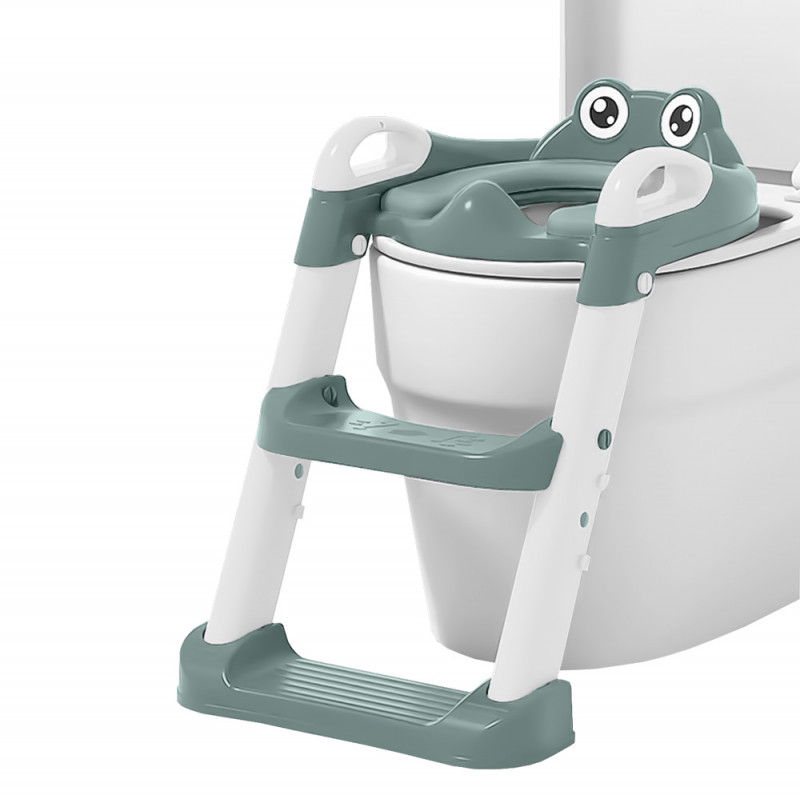 Εκπαιδευτικό κάθισμα τουαλέτας Frog με σκαλοπάτια και χερούλια με σκοπό το παιδί σας να έχει πρόσβαση στην τουαλέτα ενηλίκων. Η μετάβαση από το γιογιο στην τουαλέτα ενηλίκων θα γίνει με εύκολο και διασκεδαστικό τρόπο.