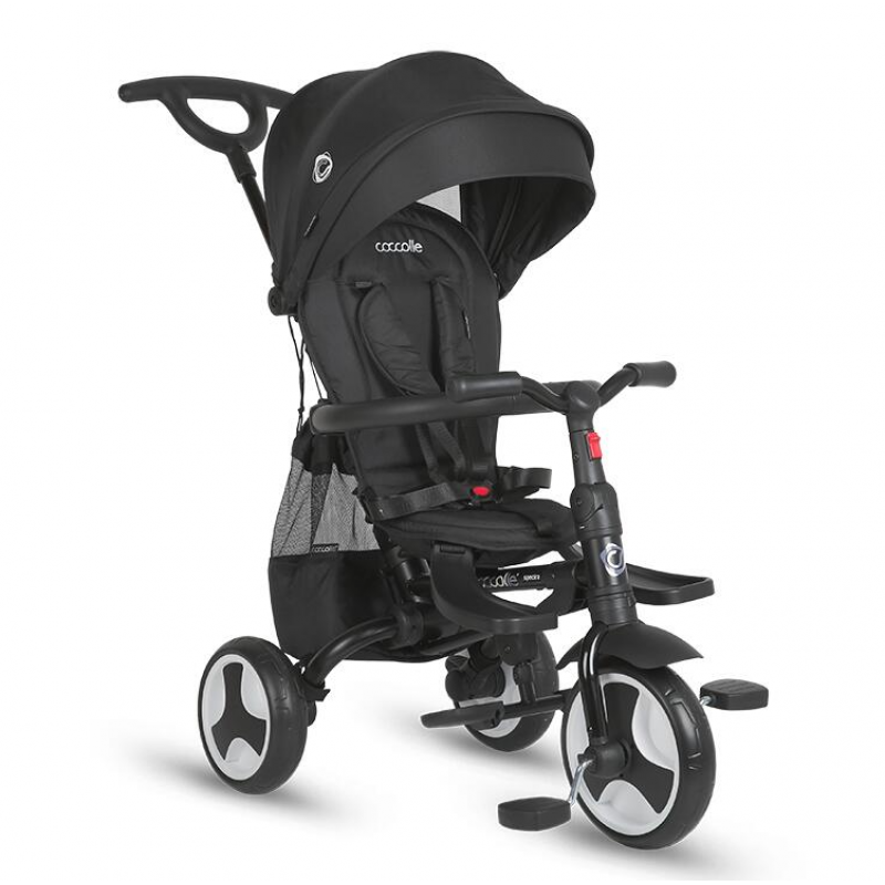 - Αφαιρούμενα στοιχεία (σκίαστρο, δακτύλιος προστασίας, υποπόδιο) για να μετατραπεί σε ένα κλασικό τρίκυκλο κατάλληλο για μεγαλύτερα παιδιά.
