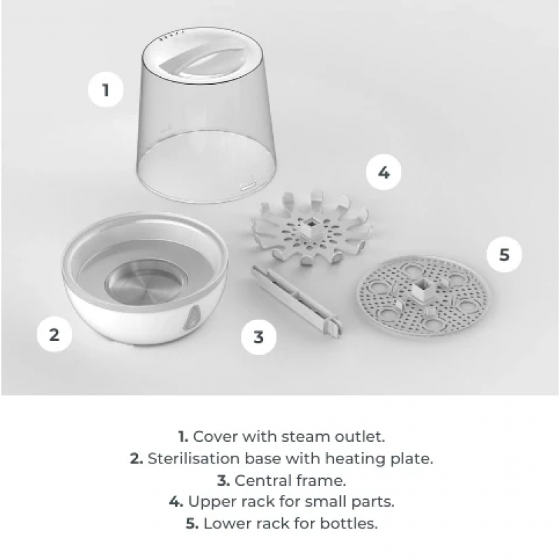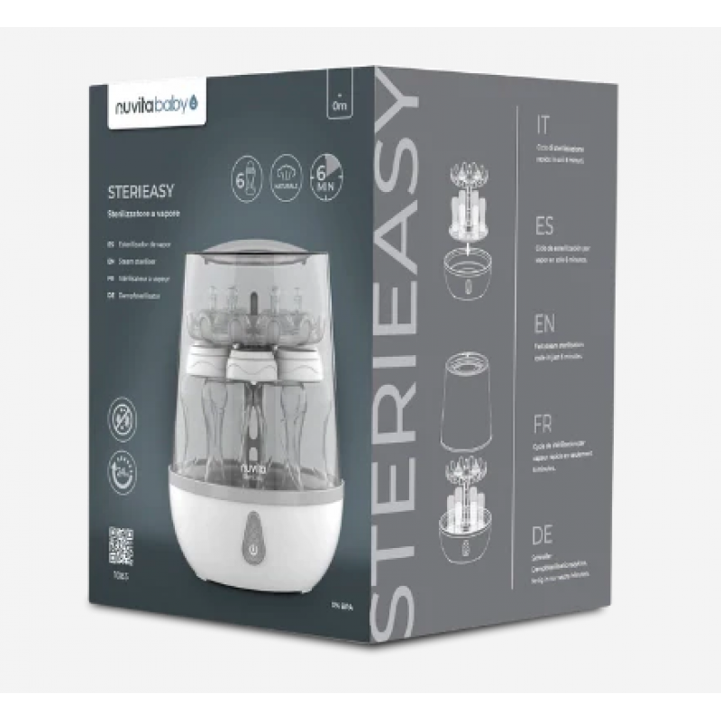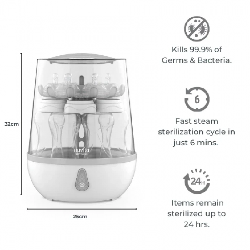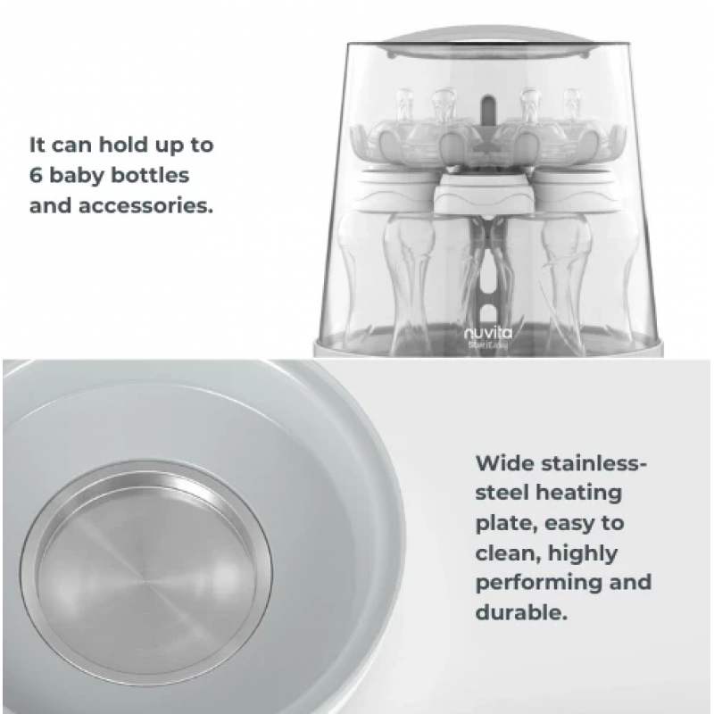 Εξαιρετικά γρήγορο και ασφαλές, αποστειρώνει με ατμό έως και 6 μπιμπερό, θήλαστρα και αξεσουάρ σε μόλις 6 λεπτά.