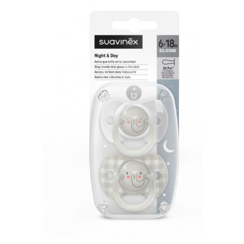 Suavinex Πιπίλα Φυσιολογική SX PRO Σιλικόνη Night&Day 6-18μ Elephant 2τεμ BR78468
