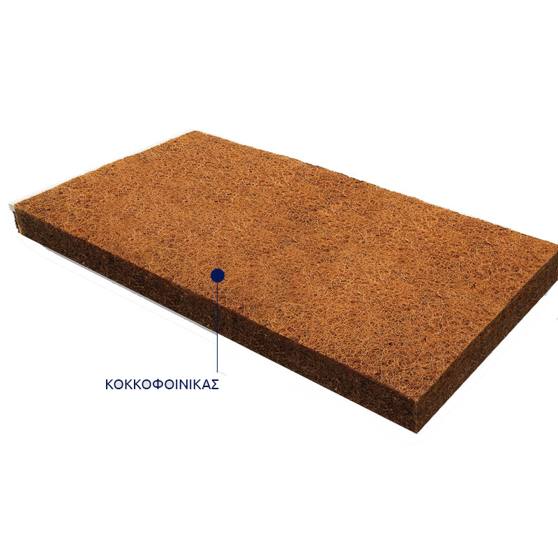 Ένα στρώμα από 100% φυσικό ελαστικοποιημένο κοκκοφοίνικα εμποτισμένο με υγρό λάτεξ που επιτυγχάνει ελαστικότητα και τέλεια επαναφορά. Διατίθεται με 2 τύπους αποσπώμενων καλυμμάτων: ζακάρ βαμβακερό ή αντιβακτηριδιακό ελαστικό.