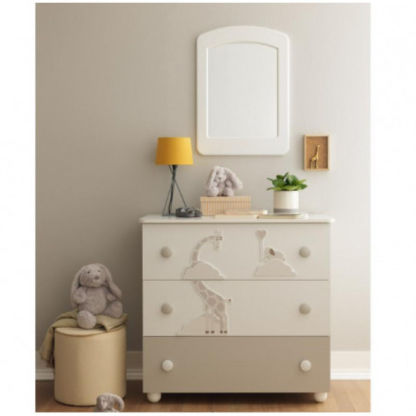 Η συρταριέρα της σειράς διαθέτει 3 ευρύχωρα, πρακτικά συρτάρια, ώστε να χωράει τα πράγματα του μωρού σας, ενώ η μεγάλη επιφάνειά της προσφέρει τη δυνατότητα να τοποθετήσετε αλλαξιέρα και αξεσουάρ του μωρού σας στο πάνω μέρος της.